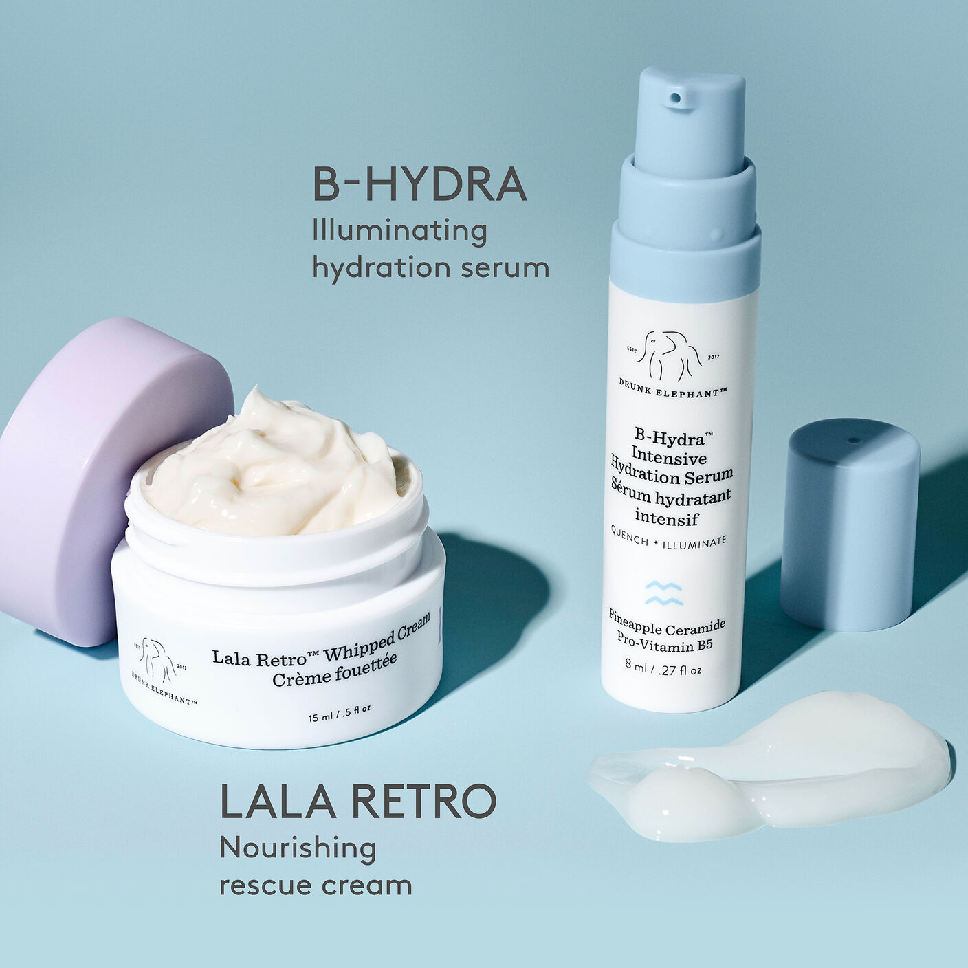 Mix one pump of B-Hydra with Lala Retro and apply to a clean, dry face.
